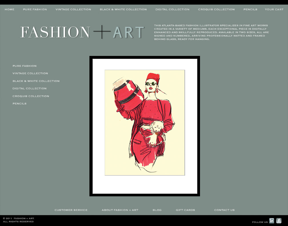 I have created hundreds of fashion illustrations over the years. And I still have most of them. Original pencils and tracings, charcoals, pastels, watercolors, inks. For decades these works have been stored in metal flat files, preserved, protected and out of sight. Until now. I’d like to introduce FASHION + ART, a new art gallery website featuring prints of my very best work now available for purchase. This blog is to showcase various pieces and share the stories behind them. We’ll see where we go in the future but for now, this is merely The Tease. The official website launch is JANUARY 2011. I’ll keep you posted…