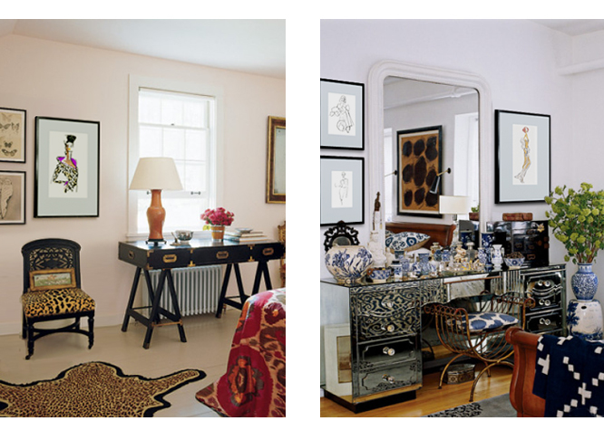 For some, the only thing better than leopard is MORE leopard. Right? HEAD UP SHOULDERS BACK from the SOLITAIRES collection brings the wild cat home in this space we borrowed from Elle Decor. Don’t do anything halfway, I say. Take it to the max or don’t take it at all. FLOW, also from SOLITAIRES, slips easily into this exquisite corner designed by Madeline Weinrib. Displayed to the left of FLOW is BOWLICIOUS and JACKIE from the PENCILS Collection. Can you imagine waking up to this every morning? What an inspiring way to start the day!