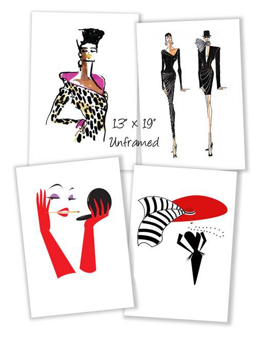 So rather than shut down the operation completely (are you mad???) we’ve come up with the next best thing. Our FASHION+ART prints are now available WITHOUT the mat and frame. Finally. (for those of you who always wanted it that way.) Offered in one perfect size, 13″ x 19″, our new prints range in price from 60.00 – 95.00.